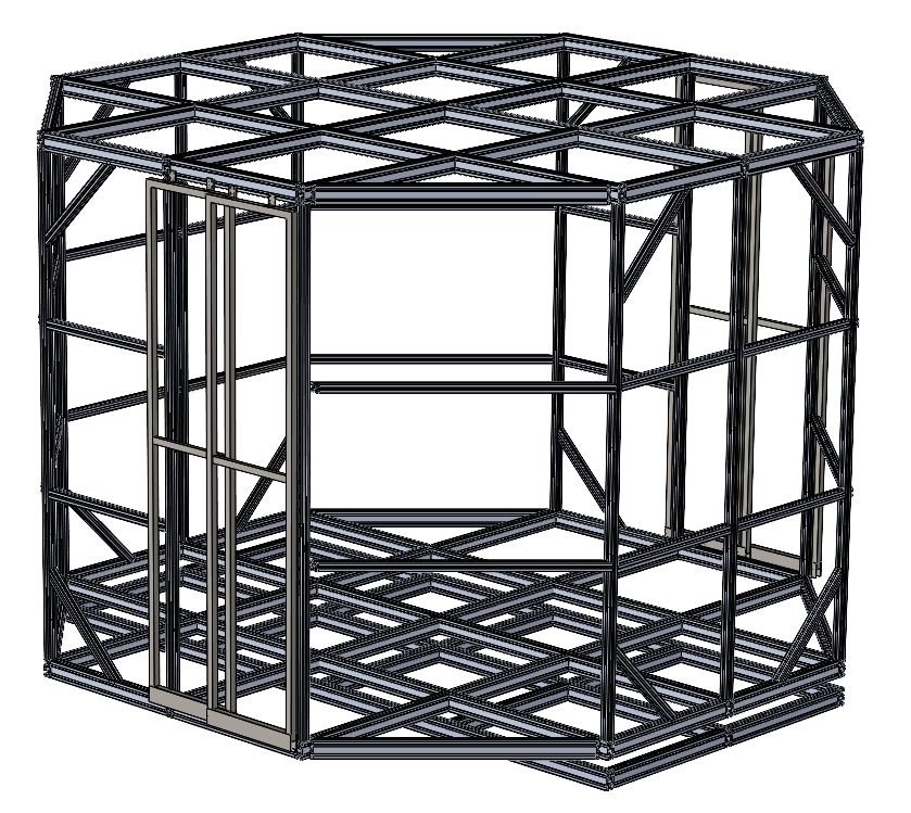 Conception pour un expérience immersive d'un châssis structurel de cabine immersive, capable de supporter les décors, les équipements électroniques et les mouvements simulés, tout en restant transportable et assemblable dans un local non industriel
